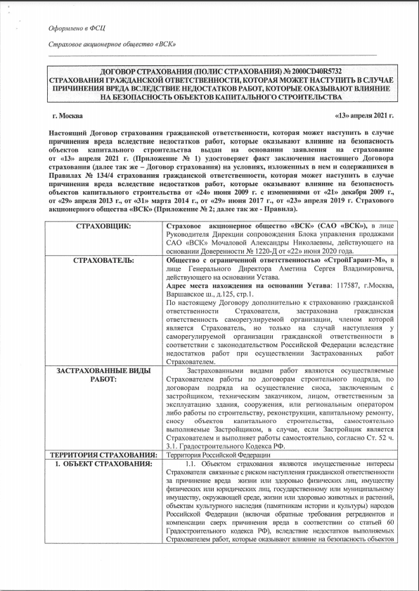 Страховой полис Страховка на 300 000 рублей